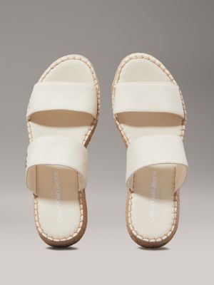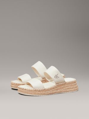The espadrille upper is crafted with 60% recycled cotton, created by reprocessing existing cotton materials.